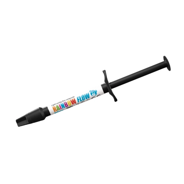 Type 1 light-curable composite (class 2, group 1), meeting the requirements of the ISO 4049 standard. The RAINBOW FLOW composite (colours: orange, yellow, green, blue, purple, pink, red, dentine, white) is intended to: